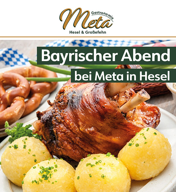 Download Dateien Unsere Angebote Alle Infos zum Buffet der Sinne Alle Infos zum Bayrischen Abend Unsere Angebote für Meta Hesel und Hof Moorblick Ob Barbecue Grillbuffet, Feiertagsbuffet, Sonntagsfrühstücksbuffet, Festessen,Weihnachtsparty, Weihnachtsbuffet, Gutsherrenbuffet, Fiesenbuffet,Spezialbuffet, Filetbuffet, Gourmetbuffet, Fischbuffet, Meer- und Flurbuffet, Italienisches Buffet, Spargel zum satt essen, Grünkohlbuffet, Ente nach Sasionpreis, Frühstücksbuffet, Abendbrotbuffet, Grillen, Moorbuffet, Bauernbuffet, Winterzeit- Grünkohlbuffet, Schwienvisit-Buffet, Landarbeiterbuffet, Rahmbuffet, Wildbuffet, Grünkohlparty und Speiseempfehlung für Gruppen. Veranstaltungskalender / Termine Speiseempfehlungen / Jahresplaner Tagung Unsere Angebote für deine Hochzeit Lade unsere Download Dateien von Meta Hesel und Hof Moorblick herunter! Tischordnung Hesel Tischordnung Großefehn Sonderangebote für Feiern Pauschalangebote für Feiern Pauschalangebote 2025 für Feiern Preisliste Hochzeitflyer Torten Hast du bereits eine Veranstaltung ausgewählt? Frag über unser Kontaktformular an. Lassen Sie sich Beraten AgB's meta.gastronomie Es ist soweit, der Osterhase 🐰 ist auf dem Weg Wartung Feuerlöscher Durch die regelmäßige War Erfahren Sie mehr Besucht uns auf Instagram